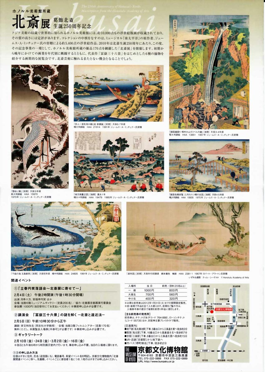 昨日『京の小袖』を見に行った京都文化博物館、来年2月3月は葛飾北斎展だそうです。